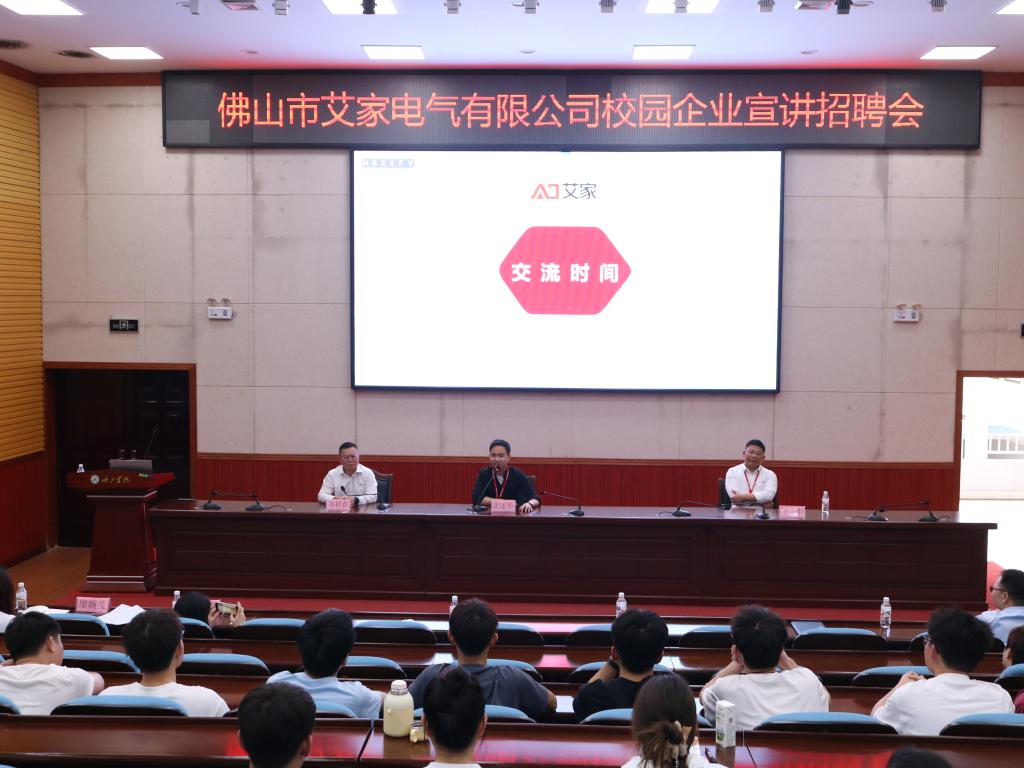 4月13日至14日,德赢Vwin官方区域合作伙伴特邀佛山市艾家电气有限公司相关负责人到德赢官网开展企业招聘宣讲会。德赢官网党委副书记蓝振榕,团委书记黄挺龙及全体19级、20级毕业生参加会议。
